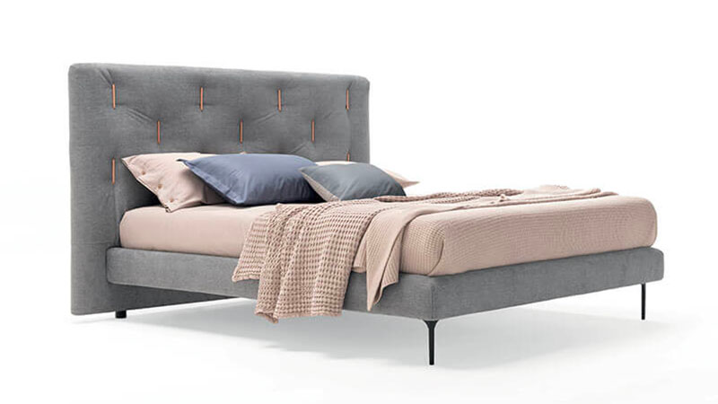 Letto comodo, davvero extra-comfort, con giroletto e testiera imbottiti. Quest’ultima simula un unico e grande cuscino a tutta larghezza.